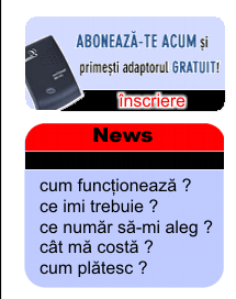 home | cum functioneaza | ce imi trabuie | ce numar sa-mi aleg | cat ma costa | cum platesc | contact | intrebari frecvente | tarife internationale | inscriere | top |